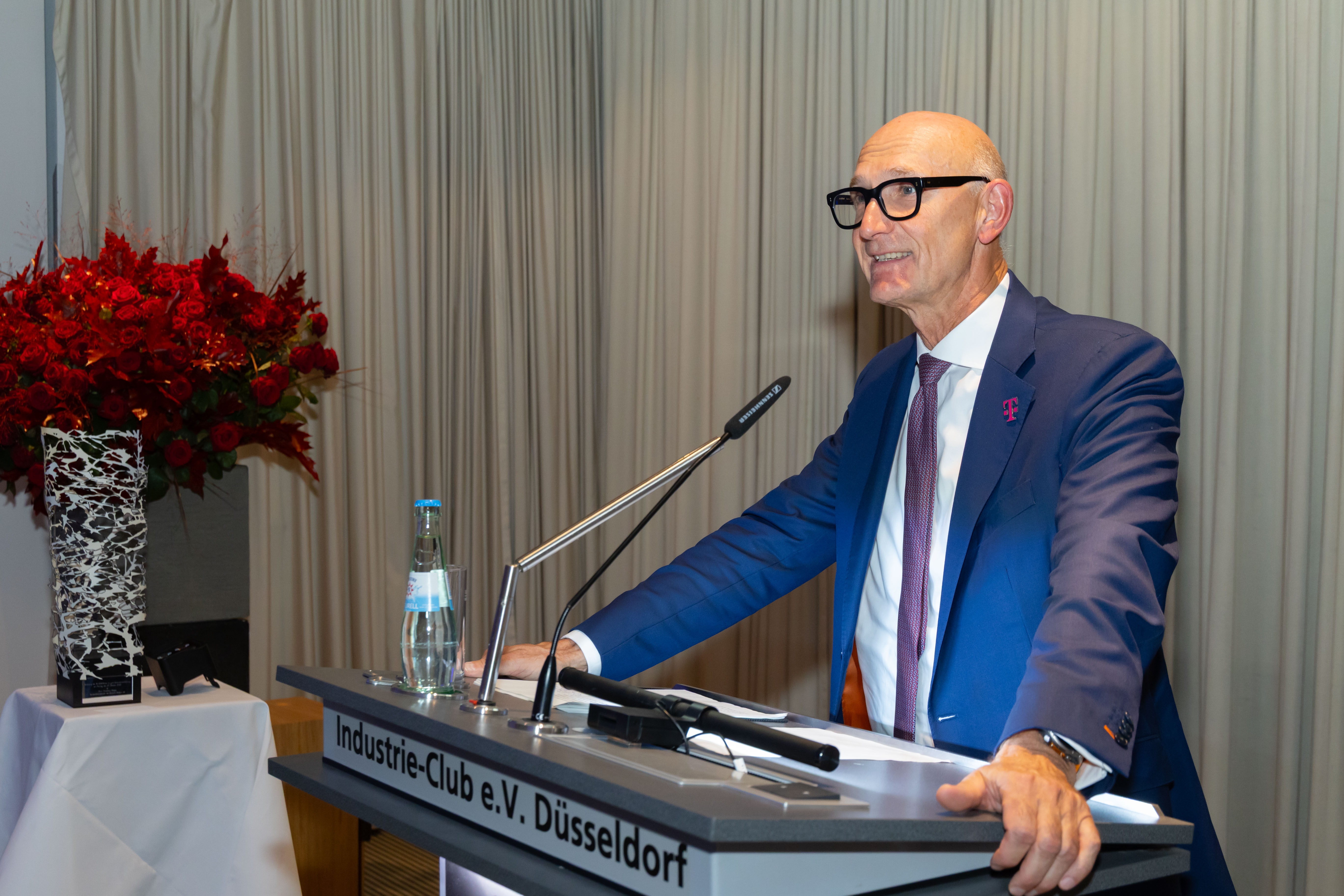 Zweitens: Ich bin die Telekom – auf mich ist Verlass. Die Telekom ist kein Rennpferd, sie ist der Ackergaul der deutschen Wirtschaft. Wir ziehen unsere Furchen: bei Glasfaser, bei 5G, in den USA, in Europa genauso wie in Deutschland. „Wer zu spät pflügt, erntet wenig“, sagt der Volksmund. Deswegen investieren wir aktuell zusätzliche Milliarden in die deutsche Souveränität. So modernisieren wir – genau wie die USA es uns vormachen – unsere Prozesse und automatisieren unsere Industrie. Damit sie nicht weiter abwandert oder verschwindet, sondern in Deutschland produktiver werden kann.